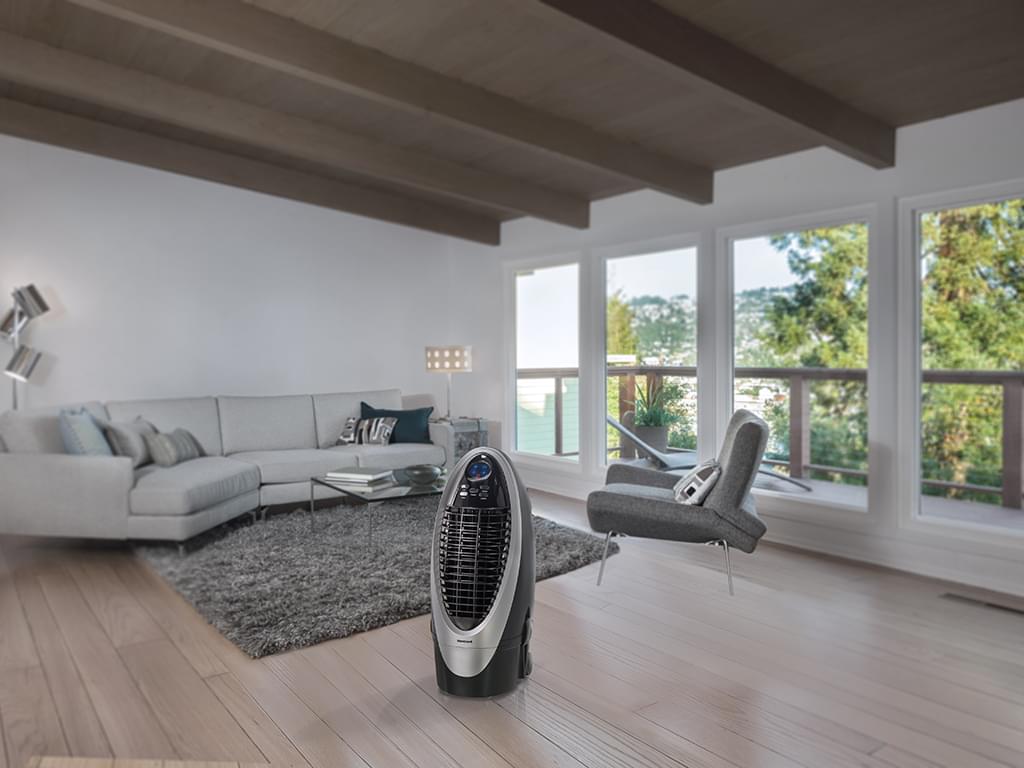 De Honeywell luchtkoeler CS10XE heeft een efficiënte honingraat-koelmembraan dat zorgt voor een optimale koeling en bevochtiging. Het Carbon Dust Filter zorgt ervoor dat stofdeeltjes en geurtjes in de ruimte worden verwijderd. Je kunt de aircooler ook vanuit de luie stoel bedienen met de handige afstandsbediening. Je kiest een van de vier snelheidsstanden of de ventilatorstand wanneer je wat minder koude lucht wilt. Op het LED-display vind je alle informatie.