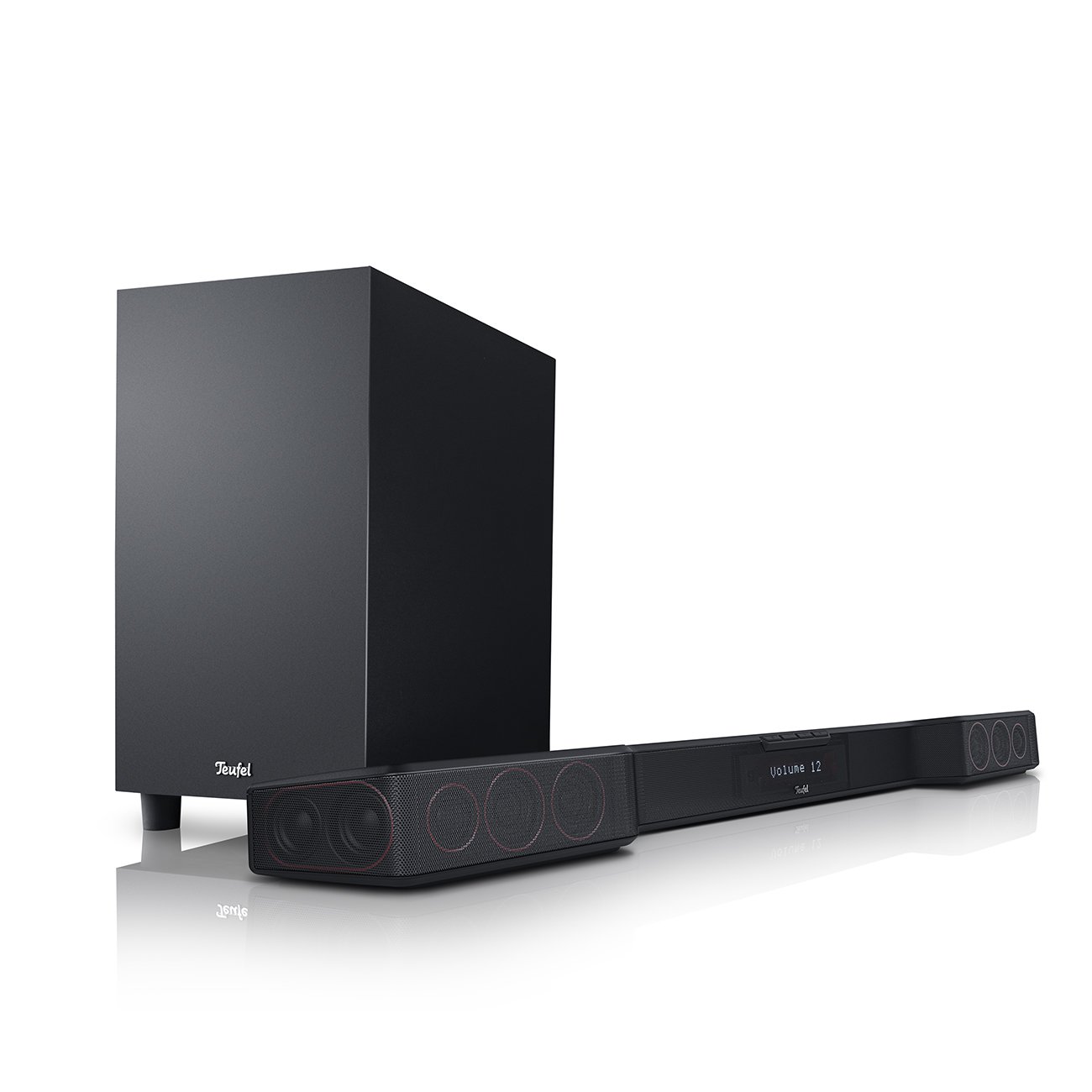 elevisiegeluid heeft nog nooit zo geweldig geklonken als met een soundbar van Teufel. Met tien high performance drivers en een subwoofer met een volle en nauwkeurige basweergave vult de Cinebar Duett elke kamer met groots geluid. De drivers aan de zijkant van de Duett zorgen samen met de door Teufel in Berlijn ontwikkelde Dynamore® Ultra-technologie voor een fascinerend omringend geluid.