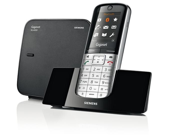 Het nieuwste hightech model van Gigaset, de SL400, combineert alle gemakken van een telefoon in een heel klein elegant design. In vergelijking met het kleine toestel is het metalen keypad groot, waardoor je toch gemakkelijk telefoonnummers kunt intoetsen. Ook de kleurendisplay is duidelijk zichtbaar. Het unieke metalen frame geeft deze kleinste Gigaset ooit bovendien een zeer luxe uitstraling. Hierdoor is de SL400 niet alleen een heel intelligent toestel, maar ook een stijlvolle accessoire voor in je huis. Het toestel heeft al twee designawards in de wacht gesleept. In Nederland is de SL400 vanaf eind april verkrijgbaar.