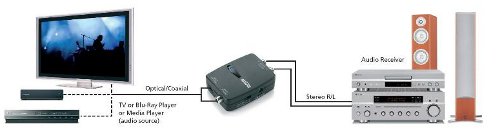 Wat als ik mijn mediaspeler op mijn Home Cinema versterker aan wil sluiten? Men kan bij het aansluiten van mediaspelers tegen het probleem aanlopen dat aansluitingen niet overeenkomen. Zo beschikt een AppleTV alleen maar over een optische (TOSLINK) digitale uitgang en kunt u hem dus niet rechtstreeks op een digitale coaxiale audio ingang van een versterker aansluiten. Ook voor deze situatie heeft Marmitek een oplossing. Namelijk een Toslink naar coaxiaal audio converter.