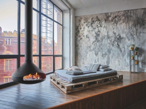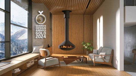 BATHYSCAFOCUS HOLOGRAPHIK® hangt en kan 80° draaien, zodat er vanuit bijna elke hoek van het vuur genoten kan worden.