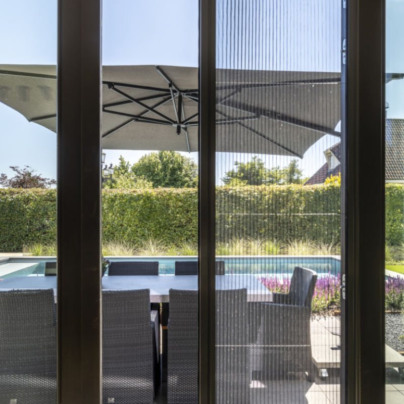Met lekker weer wil je graag de tuindeuren open zetten, maar geen ongewenste insecten binnen hebben. De plisséhordeur is hiervoor een uitkomst, praktisch én een mooi product. De hor is verkrijgbaar in diverse standaardkleuren, maar je kan ook kiezen om deze mee te laten kleuren met de kozijnen. De plisséhordeur van Zonnelux is een echt maatwerk product.