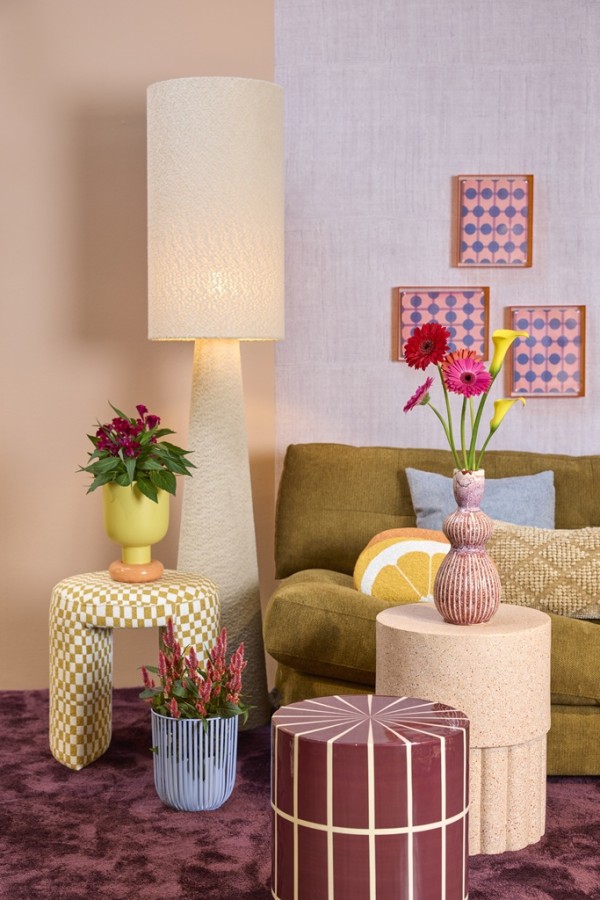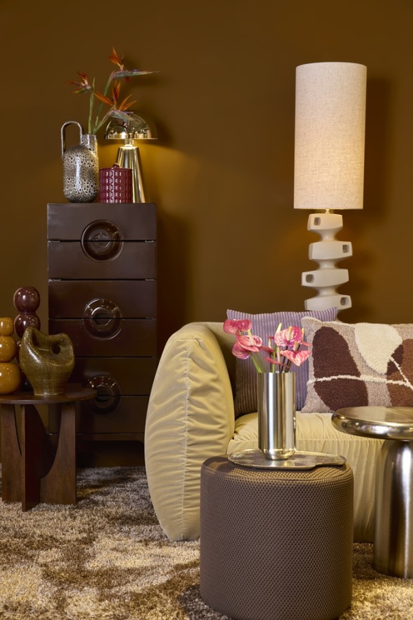Onze samenleving wordt steeds onvriendelijker, en verharding en mentale gezondheid zijn serieuze problemen. Hoop, vriendelijkheid, zachte humor, verantwoordelijkheid en betekenisvolle verbindingen vormen een antwoord op al het negativisme. Vanuit deze gedachte ontstaat de woontrend ‘Intriguing Decor’, waarbij het warme kleurgebruik direct opvalt. Daarnaast wordt er veel textiel gebruikt, dat de warme uitstraling benadrukt. De grote tapijten en de ruitdessins lijken je meteen te omarmen en zijn uitnodigend. Toch zit er ook een klein beetje spanning in het licht-donker kleurgebruik en in het materiaalcontrast: glanzende oppervlakten worden gecombineerd met ruwere structuren. Een grappig accent, zoals een citroenkussen op de bank, zorgt voor een glimlach.