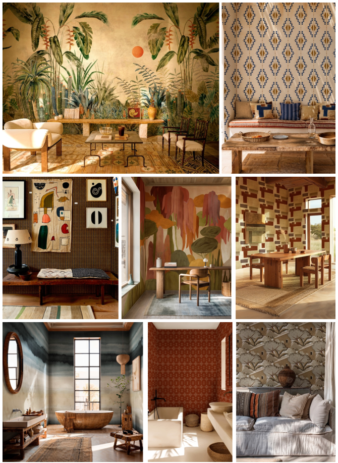 In de ‘Sarape’-collectie komen historische symboliek, natuurmotieven en authentieke ambachtsdetails samen in moderne interpretaties. De behangontwerpen zijn rijk aan verwijzingen naar het dagelijks leven, de rituelen en de natuurlijke omgeving die zo’n belangrijke rol spelen in het Mexicaanse culturele landschap.