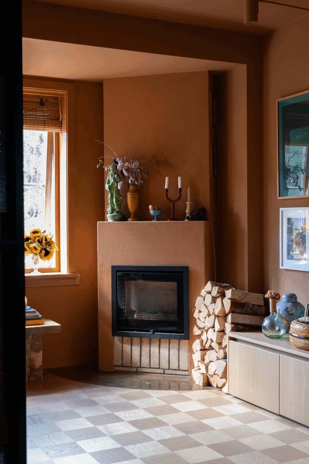 Copenhagen Orange is gemaakt van natuurlijke pigmenten en heeft een zeldzame diepte en metamerisme, een fenomeen waarbij kleuren transformeren onder verschillende lichtomstandigheden. Bij daglicht kan het kalm en bijna beige lijken. Bij kaarslicht gloeit het warm op. En wanneer de avondzon de muren raakt, wordt de kamer omgetoverd tot een levendige weergave van oranje tinten.