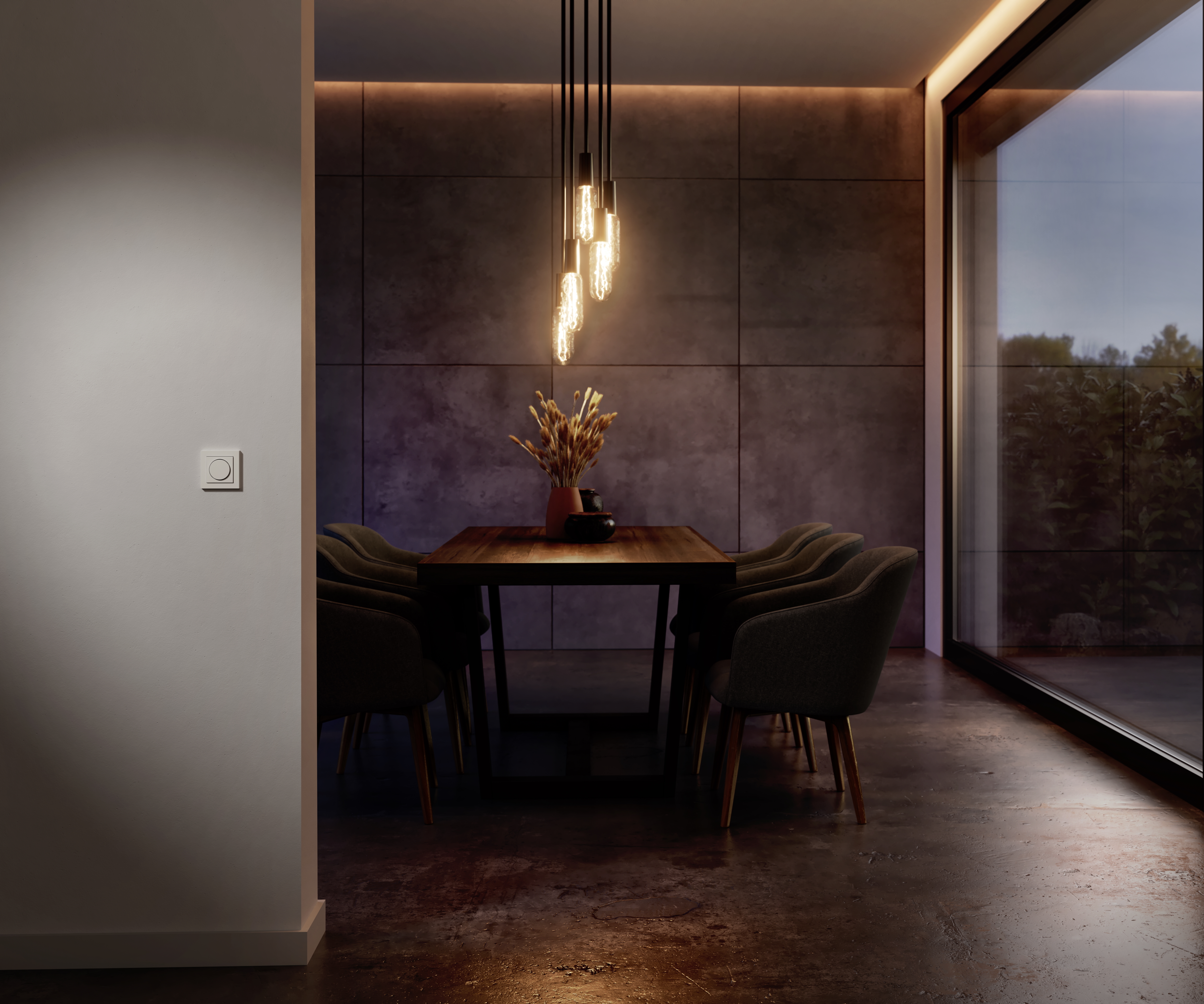 De inbouwdimmer van Gira is de perfecte schakelaar om je avond te bepalen en sfeer te geven.