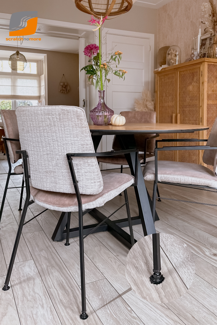 De oplossing voor stoelen met holle poten. Bescherm jouw vloer met de krasvrije beschermdoppen van Scratch no More!