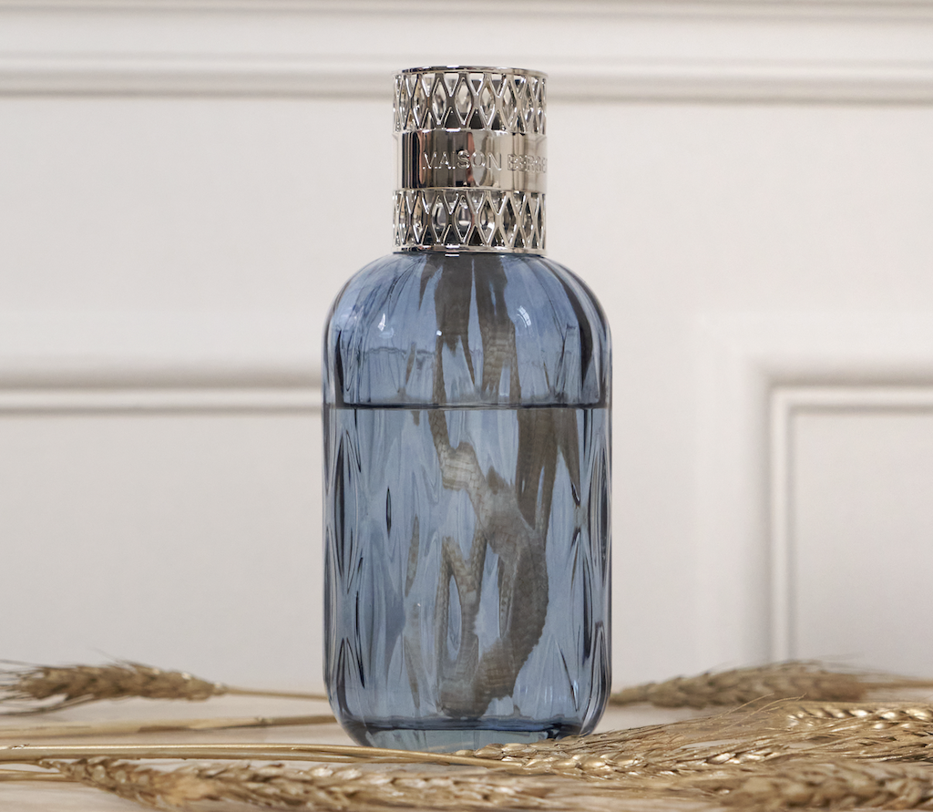 Naast de Lampe Berger bevat de Quintessence collectie een parfumverspreider en autodiffuser in hetzelfde design en is hij verkrijgbaar in twee kleuren, Bleu en Prune.