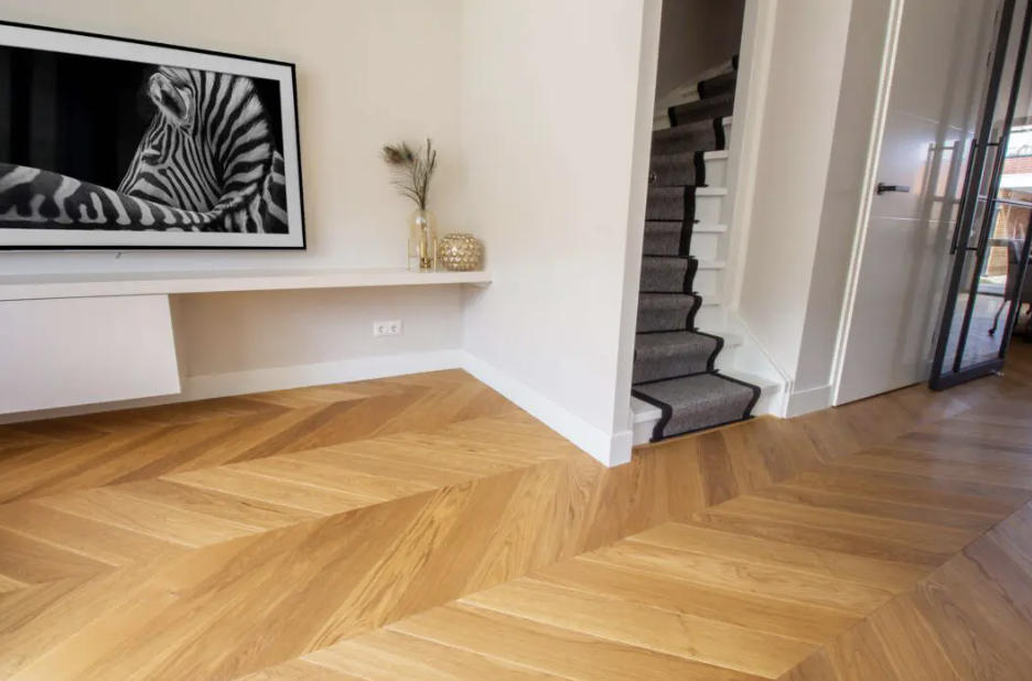 Net zoals kunst is geen enkele houten vloer hetzelfde. Elke plank is een meesterwerk op zich, met zijn eigen karakter, kleur en textuur die het natuurlijke proces van groei en veroudering weerspiegelt. De nerven, knoesten en nuances in de houtstructuur maken elke vloer bijzonder, en geven een gevoel van authenticiteit en tijdloosheid. Het is niet zomaar een vloer, maar een stukje natuur dat jouw ruimte verrijkt met zijn eigen geschiedenis en charme.