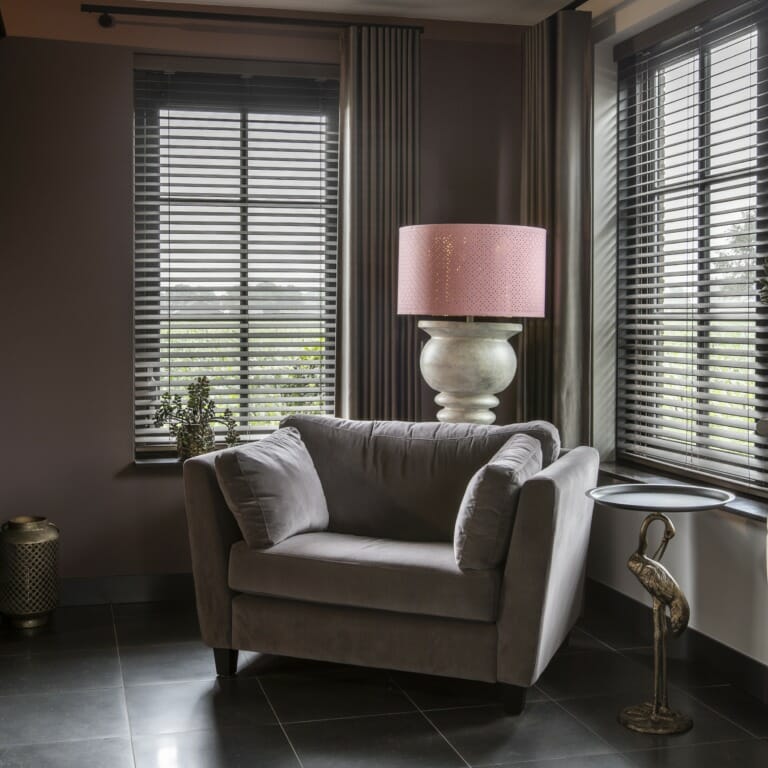 Je denkt misschien niet direct aan houten jaloezieën bij een landelijk interieur, maar het is een modern landelijke raamdecoratie. De strakke lijnen van de houten jaloezieën zijn minimalistisch en het hout brengt warmte en sfeer in je landelijke interieur. Voor extra body kunnen de houten jaloezieën gecombineerd worden met (verduisterende) gordijnen. De houten jaloezieën zijn zowel met ladderband als met ladderkoord leverbaar. Met een ladderkoord blijft het zicht naar buiten beter behouden en valt er meer daglicht binnen.