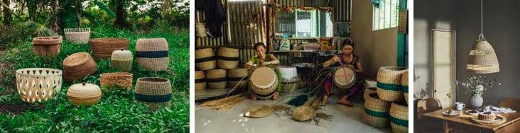 De handgemaakte TJILLEVIPS manden zijn geweven van verschillende soorten natuurlijke materialen: van bamboe en bananenvezels tot zeegras en populier. De subtiele, natuurlijke kleurverschillen en de traditionele technieken maken elke mand uniek. De handgemaakte TORARED lampenkap is gemaakt van zeegras. De openingen in de kap zorgen voor bijzonder lichtinval in de kamer.