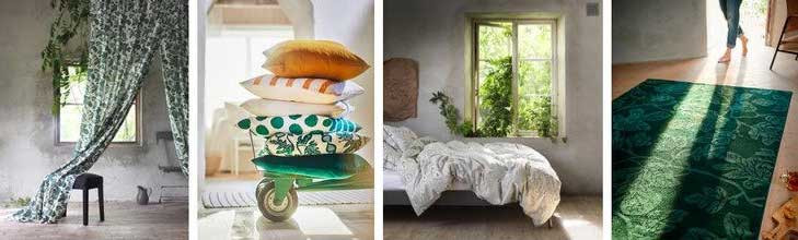 De voorjaarscollectie van IKEA brengt frisse energie in huis: gordijnen met een print van bladeren tot beddengoed met aardse tinten en romantische bloemen.