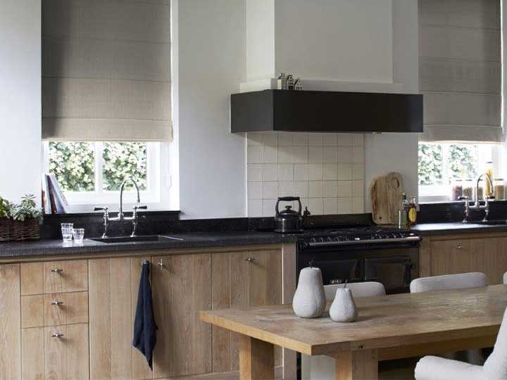 Vouwgordijnen worden in de meeste gevallen gemaakt van linnen, katoen of polyester. Echte warme materialen dus! Je ziet vouwgordijnen vaak terugkomen in een landelijk interieur, maar we zien ze ook steeds vaker terugkomen in een Scandinavisch interieur of bohemian interieur. En het leuke aan vouwgordijnen is dat je er echt contrast mee kan creëren. Een strakke muur, stoer keukenblad, houten keukenkastjes en mooie vouwgordijnen met een linnenlook. Hoe tof is dat?! En vooral ook: hoe knus?!