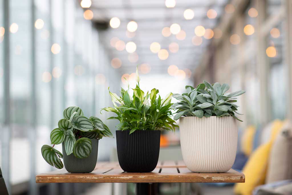 De beige ‘Made with’ pot is gemaakt met zaagsel en de zwarte met gerecycled textiel: oude kleding hoeft niet verbrand te worden, maar krijgt een nieuw leven. Op deze manier laat elke eco-vriendelijke bloempot met zijn kleur de oorsprong zien. Het design van de lichtgewicht Groove potten is geïnspireerd op de natuurlijke groeven in stenen en bergen als eerbetoon aan de wonderen van de natuur.