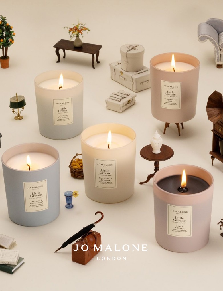 Deze limited edition-collectie zet vijf geliefde geurkaarsen uit de Jo Malone London-collectie in de schijnwerpers, elk afgestemd op een eigen sfeerbeleving. Elke kaars is tot leven gebracht met kleuren en patronen uit het uitgebreide palet van verf en behang van Little Greene.