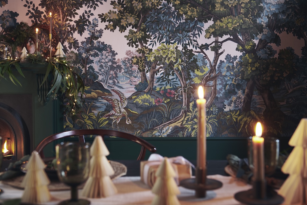 Breng de kerstsfeer in huis met het Bodenham-fotobehang van Graham & Brown.