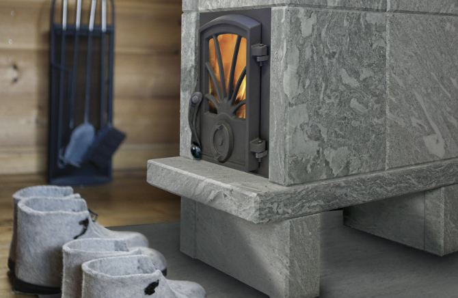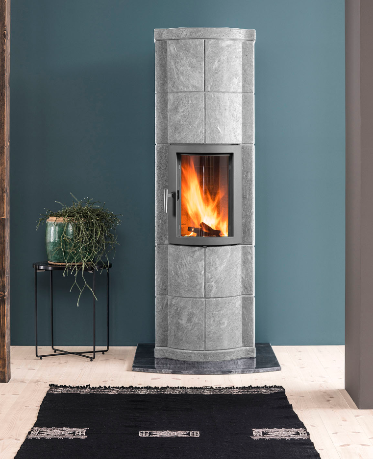 De Marcello kachel kenmerkt zich door elegante details, zoals de glazen deur die bijna naadloos overgaat in de steen.