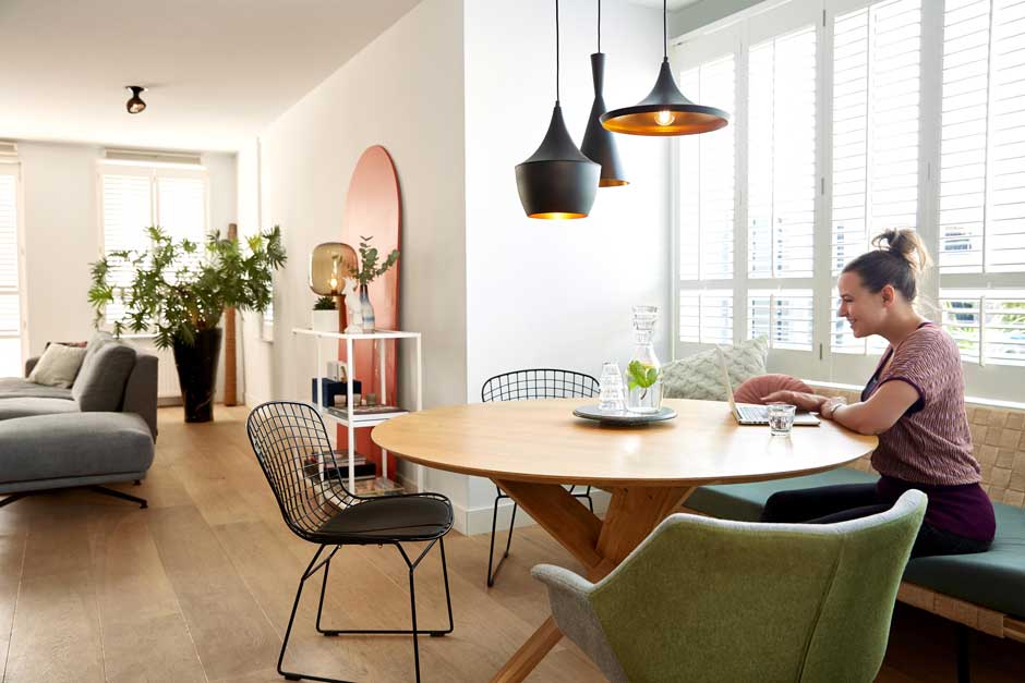 Doordat we regelmatig thuis aan het werk zijn, is het soms lastig om een goede balans te vinden tussen werk en privé. Je verandert niet van locatie waardoor het moeilijk kan zijn om los te komen van de werkmodus. Het aanpassen van het soort licht kan hierbij helpen, door de sfeer te veranderen en het gevoel van thuiskomen na te bootsen. Door het wisselen van helder wit licht tijdens het werken, naar warm gedimd licht na werktijd, maakt het lichaam melatonine aan. Melatonine is een hormoon waardoor je beter kunt ontspannen en tot rust komt. Precies wat nodig is om de werkdag mee af te sluiten. Met de Innr-app kies je gemakkelijk voor een scène of routine en verander je daarmee de setting van werk naar privé. Ook kun je een timer inschakelen, zodat je lampen automatisch overschakelen aan het einde van de werkdag, wel zo makkelijk!
