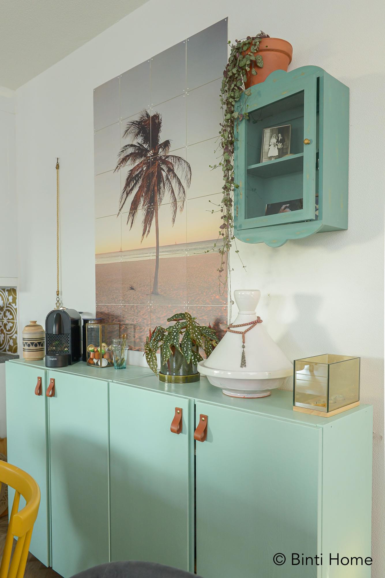 Souraya van Binti Home maakte van haar wat ‘gewone’ witte Ivar kasten twee echte eyecathcers. Ze gebruikte Midden Tijm: een prachtig frisse mintgroene kleur.