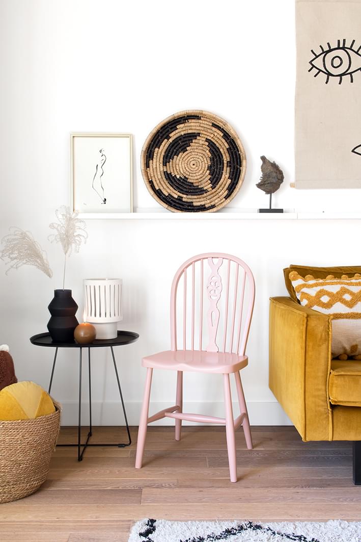 Marij van My Attic wordt rustig van schilderen en doet dat dan ook graag. Zij kocht een prachtig houten stoeltje bij de kringloopwinkel en gaf die een nieuwe look met deze twee-in-een verf in de kleur zalmroze (kleurcode C8.10.70). Hoe mooi!