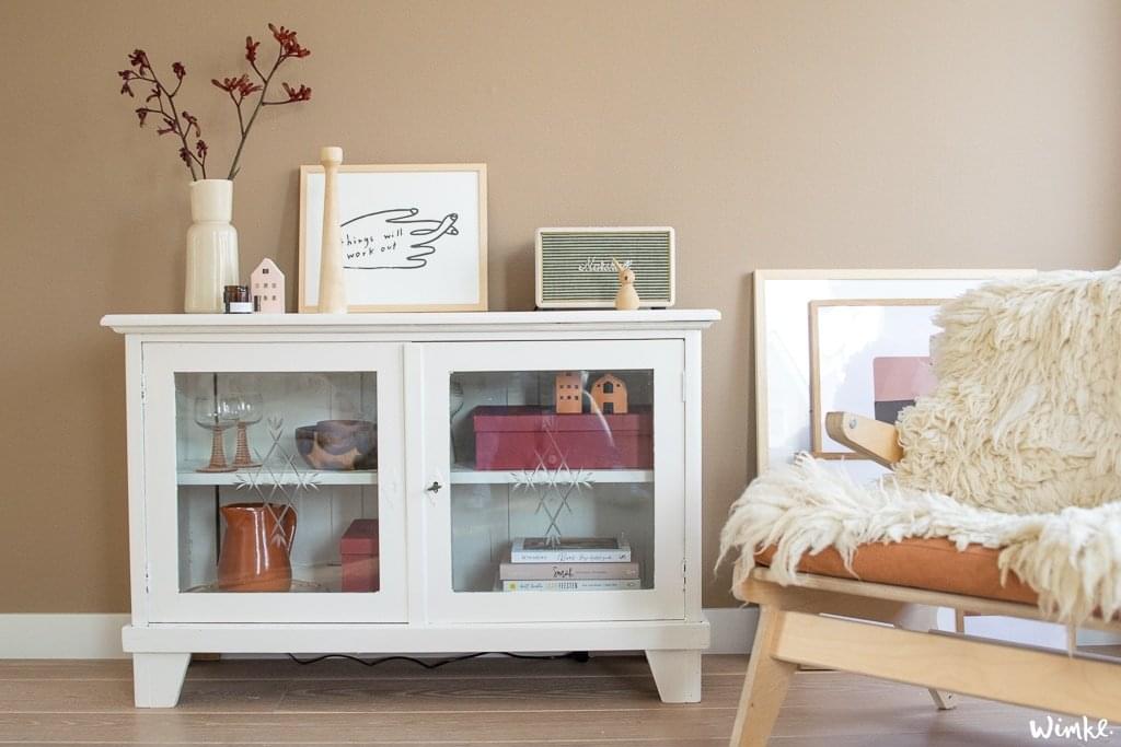 Wimke is gek op Do It Yourself projecten. Ook zij scoorde een prachtig houten kastje bij de kringloop en toverde die om in een fris dressoir. Zij gebruikte de kleur gebroken wit. Mooi hoor!