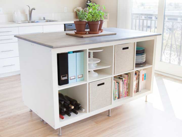 Het is één van de populairste kasten van IKEA: de Kallax vakkenkast. En dat is ook niet zo gek, hij is verkrijgbaar in verschillende formaten en kan dan ook voor van alles gebruikt worden. Deze variant hadden we echter nog niet eerder gezien: van twee Kallaxkasten is een superstoer keukeneiland gemaakt. Er zijn nog een oud tafelblad en poten aan de onderkant aan toegevoegd om het helemaal af te maken. Echt een hele creatieve DIY.