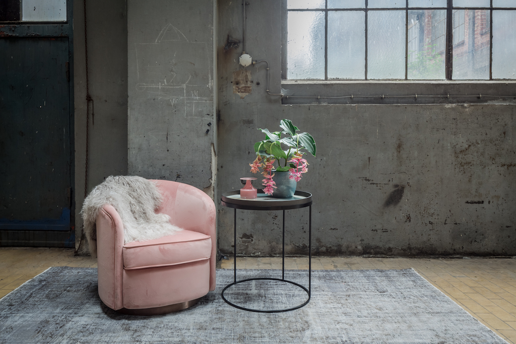 En daar slaagt de swivel chair blindelings in. Beschikbaar in roze of goud: rijke kleuren die de aandacht trekken. Al speelt het zachte fluweel daar zeker ook een rol in. Voeg daar nog eens een 360° draaiende metalen basis aan toe in rosé goud en je waant je op een echte wolk.