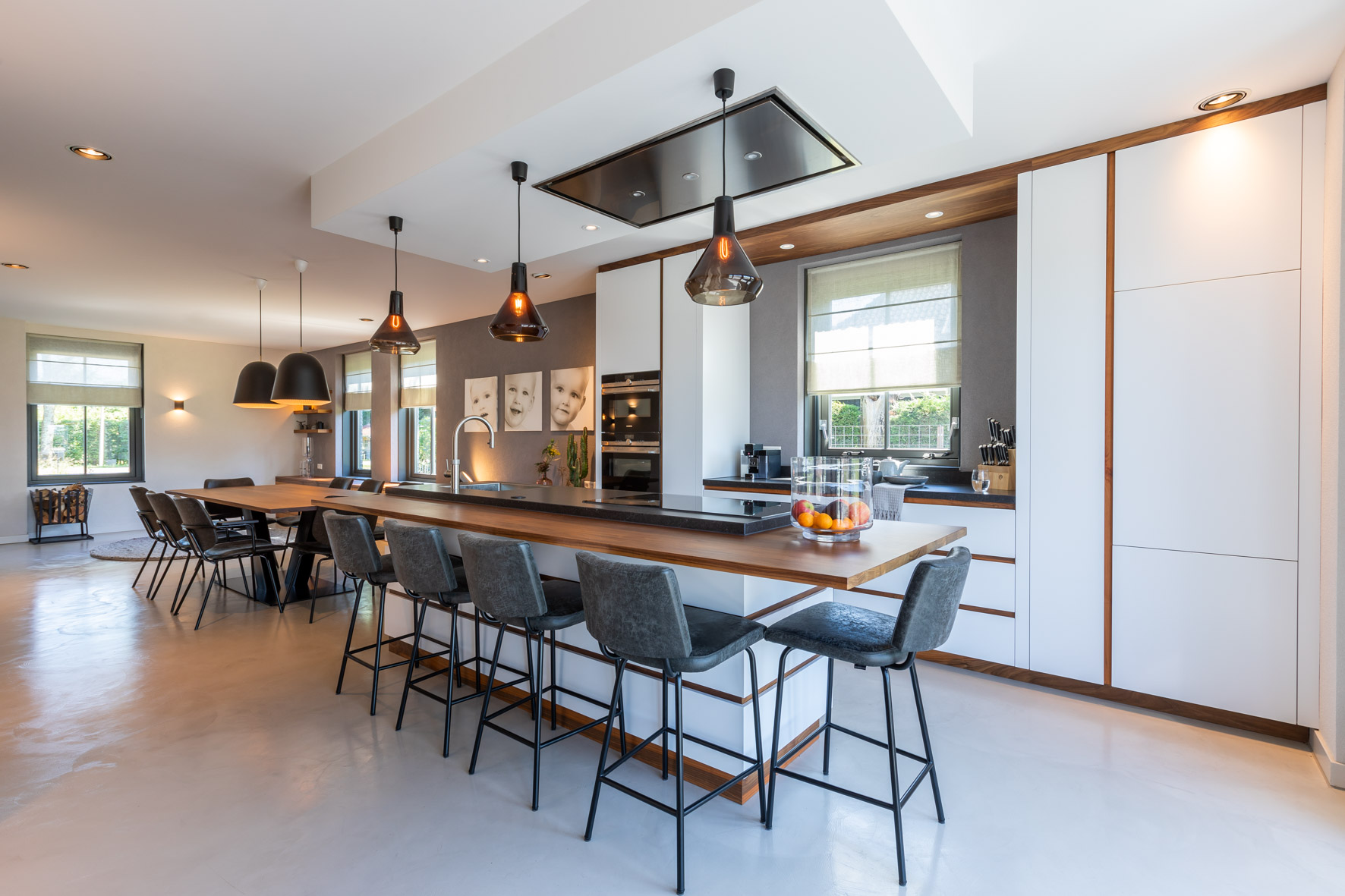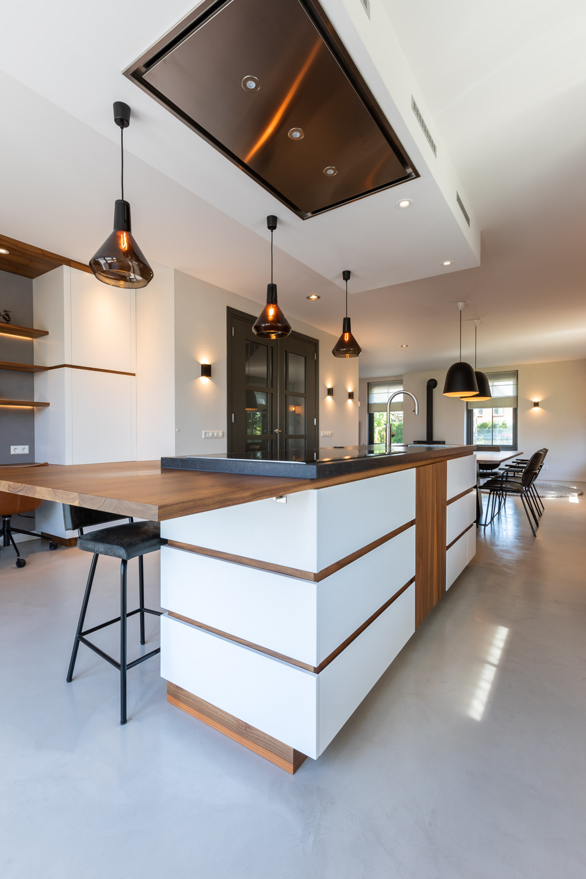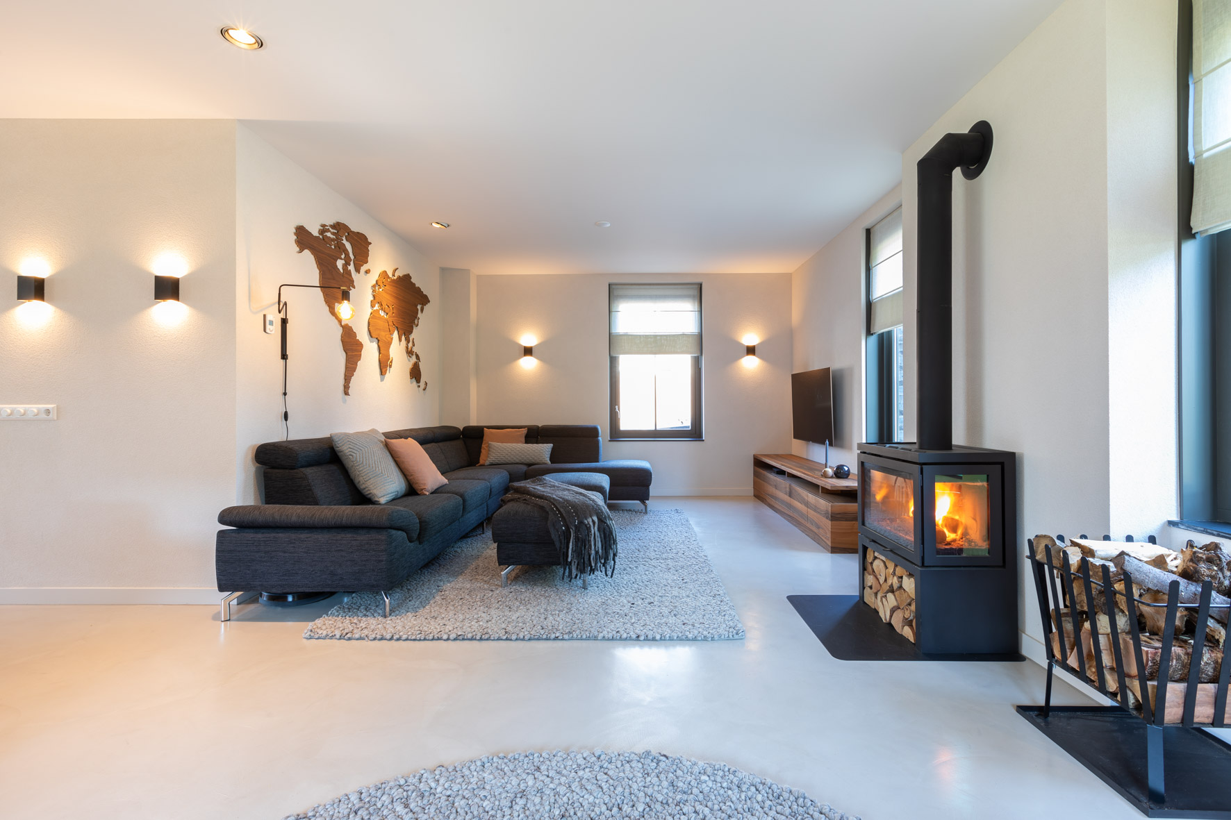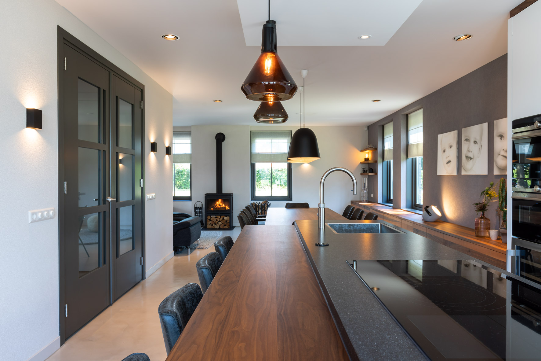 Interieurontwerp, lichtplan, meubelontwerp. Alle aspecten van het interieur zijn hier prachtig afgestemd en kloppen met het huis en de bewoners.