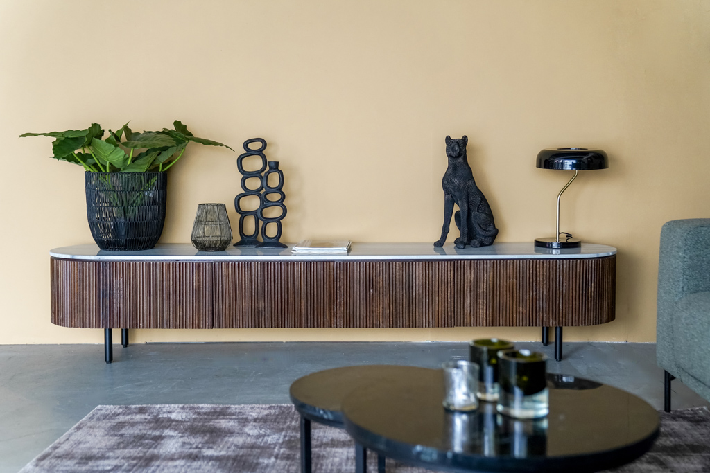 Bij Zen Lifestyle zijn ze super enthousiast over deze trend. De nieuwe collectie Specter bevat verschillende meubels zoals tv meubels, kasten en salontafels gemaakt van manghout in combinatie met marmer. Deze combinatie voelt warm aan en past perfect bij de kleuren en stijlen van nu. Elk meubel is uniek, doordat de print van het marmer op elk item weer net iets anders is. Marmer is een sterk steensoort en daardoor ook heel erg duurzaam. Alweer een trend van van deze tijd! Doordat het zo sterk en duurzaam is zien we het nog steeds heel veel terug in oude architectuur. Ouderwets is het allang niet meer en dat zien we zeker aan deze nieuwe collectie meubelen. Marmer in een nieuw jasje.