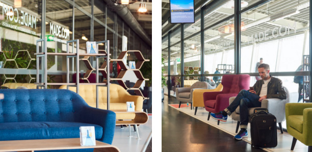 Sinds januari dit jaar heeft MADE.COM haar eerste fysieke showroom geopend in Nederland, aan de Overtoom te Amsterdam. Het pand delen ze met de bekende kapper Bubblekid en coffee roasters Lot61. Het designmerk is altijd op zoek naar nieuwe manieren om een onconventionele shopomgeving neer te zetten. Zo heeft MADE.COM in mei vorig jaar ook het social platform Unboxed in Nederland gelanceerd, een eigen social platform welke fungeert als virtuele showroom. Hier kunnen gebruikers van Unboxed foto’s van hun interieur uploaden, elkaar inspireren en zelfs onderling contact opnemen. Een vernieuwend interieurplatform waarbij de klant centraal staat. Met de samenwerking met Schiphol heeft MADE.COM inmiddels haar derde onconventionele showroom in Nederland gelanceerd. De samenwerking is in ieder geval voor drie maanden en wordt mogelijk daarna verlengd.