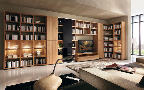 MEGA-DESIGN past in elke ruimte en tegen elke wand, ook tegen schuine zolderwanden, en dat tot op de centimeter precies. Geen plekje blijft onbenut. Het systeem bestaat uit staanders waar fronten voor lopen. Gebruikers kunnen vrij kiezen hoeveel open en gesloten elementen ze installeren. De brede keuze aan kastfronten laat toe een eigen creatie te maken, met bijvoorbeeld de zachte uitstraling van hout of de luxueuze sfeer van lak. Achter de schuifdeuren kan een grote flatscreen verborgen worden die driedimensionaal kan bewegen dankzij een speciale houder. Ook de grote schuifdeuren lopen heel licht over hun geleiders.