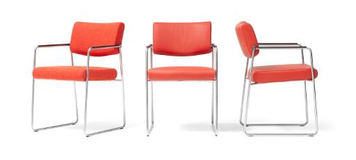 Deze nieuwe luchtige stoel van Harvink zit verrassend comfortabel. De zitdiepte is instelbaar en is verkrijgbaar met een slede of met vierpoots op wielen.