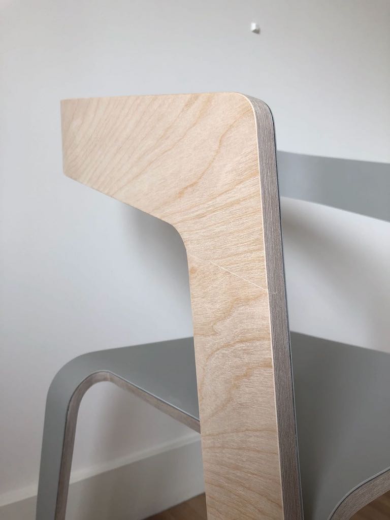 Het gaat om een moderne eet- of bureaustoel, ontworpen met een actieve zithouding. In het ontwerp komen twee vormen samen, te weten de rugleuning en de zitting, die uiteindelijk een geheel vormen door de laagopbouw van het basismateriaal te weten vliegtuigtriplex. Hierdoor lijkt het echter net alsof de zitting en de leuning uit elkaar zijn gegroeid. Dit heeft Berend nog extra benaderd door te kiezen voor linoleum als afwerking. Zo creëerde hij namelijk een binnen- en een buitenkant, met respectievelijk linoleum en berkenhout triplex.