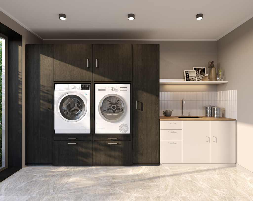 Het visualiseren van de wasruimte van je dromen is wat ons betreft dé manier om tot het perfecte eindresultaat te komen. Laat je inspireren op Pinterest, knip inspirerende plaatjes uit magazines… alles om een goed beeld te vormen van jouw wensen en stijl. Natuurlijk denk je hierbij niet alleen aan de praktische indeling van je ruimte. Ook details zoals de kleur op de muur en de finishing touch met accessoires zijn heel bepalend voor het eindresultaat. Heb je het beeld compleet? Dan is het tijd voor de volgende stap: het uitzoeken van een passende kast voor jouw laundry room! Wil jij een kleine ruimte optimaal benutten, kies voor een kast waarin de wasmachine en droger boven op elkaar staan. Ga je voor de ideale werkhoogte, dan is een verhogende kast de oplossing. Hierbij staat de wasmachine op stahoogte. Zo hoef je dus nooit meer te bukken! Je kunt deze oplossingen eventueel aanvullen met verschillende opzetkasten, zodat je elke centimeter van je wasruimte optimaal benut. Wat is jouw ultieme opstelling?