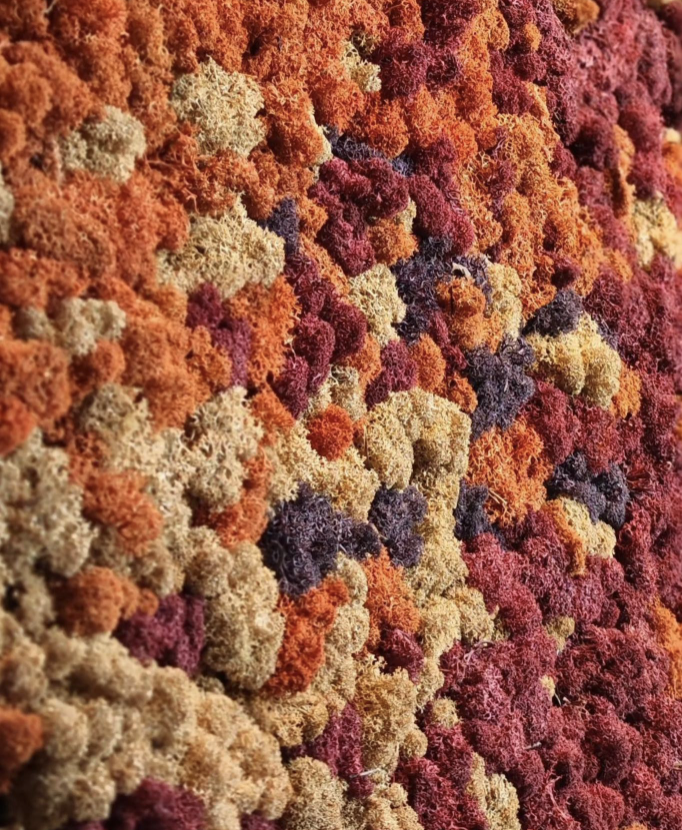 Mosschilderij Autana is een gedurfde stap weg van de traditionele groene moswand en brengt een frisse, warme benadering van mosdecoratie. Dit unieke kunstwerk straalt met diepe kersentinten en breekt de norm door de toevoeging van rijke kleuren zoals mango, lavendel, naturel en bordeaux. De bijzondere combinatie van deze kleuren creëert een levendig en expressief design dat niet alleen een visueel statement maakt, maar ook de sfeer van elke ruimte volledig verandert.
