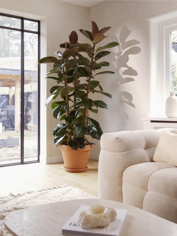 De kerstboom, die na de decembermaand het huis uitgaat, laat een behoorlijk lege plek achter. Zeker omdat ie vaak veel ruimte inneemt. Daarom is een grote kamerplant een sfeervol alternatief omdat je er meteen veel groen mee in huis haalt. En door z’n hoogte kun je ‘m ook goed zien vanuit elke hoek van de kamer. Kies voor een echte eyecatchers als Ficus en Strelitzia met groot groen blad. Of creëer een tropische sfeer met kamerpalmen zoals Areca en Kentia.
