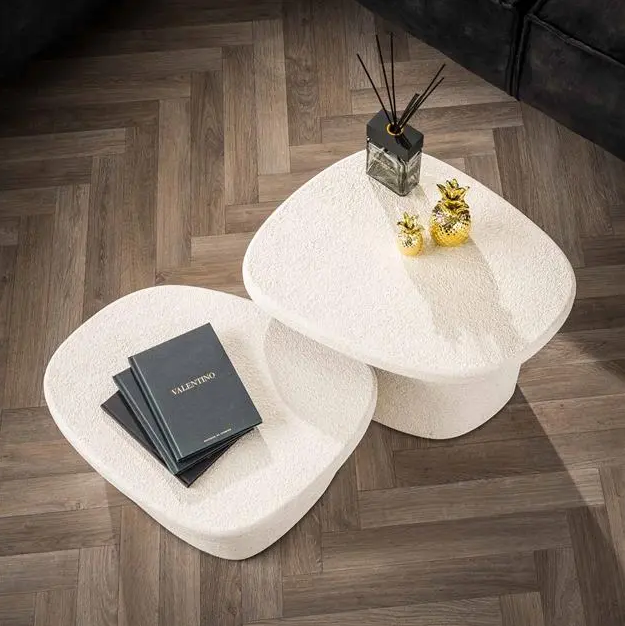 Salontafelset Stone Organic is een geweldig set bijzettafels of salontafels in een moderne en luxe uitstraling. Dit komt voornamelijk doordat deze tafels in marmer composiet zijn uitgevoerd. Ze zijn heel leuk te combineren met de organische banken, maar staan ook geweldig bij een strak interieur met rechte lijnen. Deze tafelset is alleen online beschikbaar. informeer gerust naar de mogelijkheden bij Mokana. Bij ons vind je online namelijk in de serie Stone nog meer meubels, zoals wandplanken van marmer composiet.