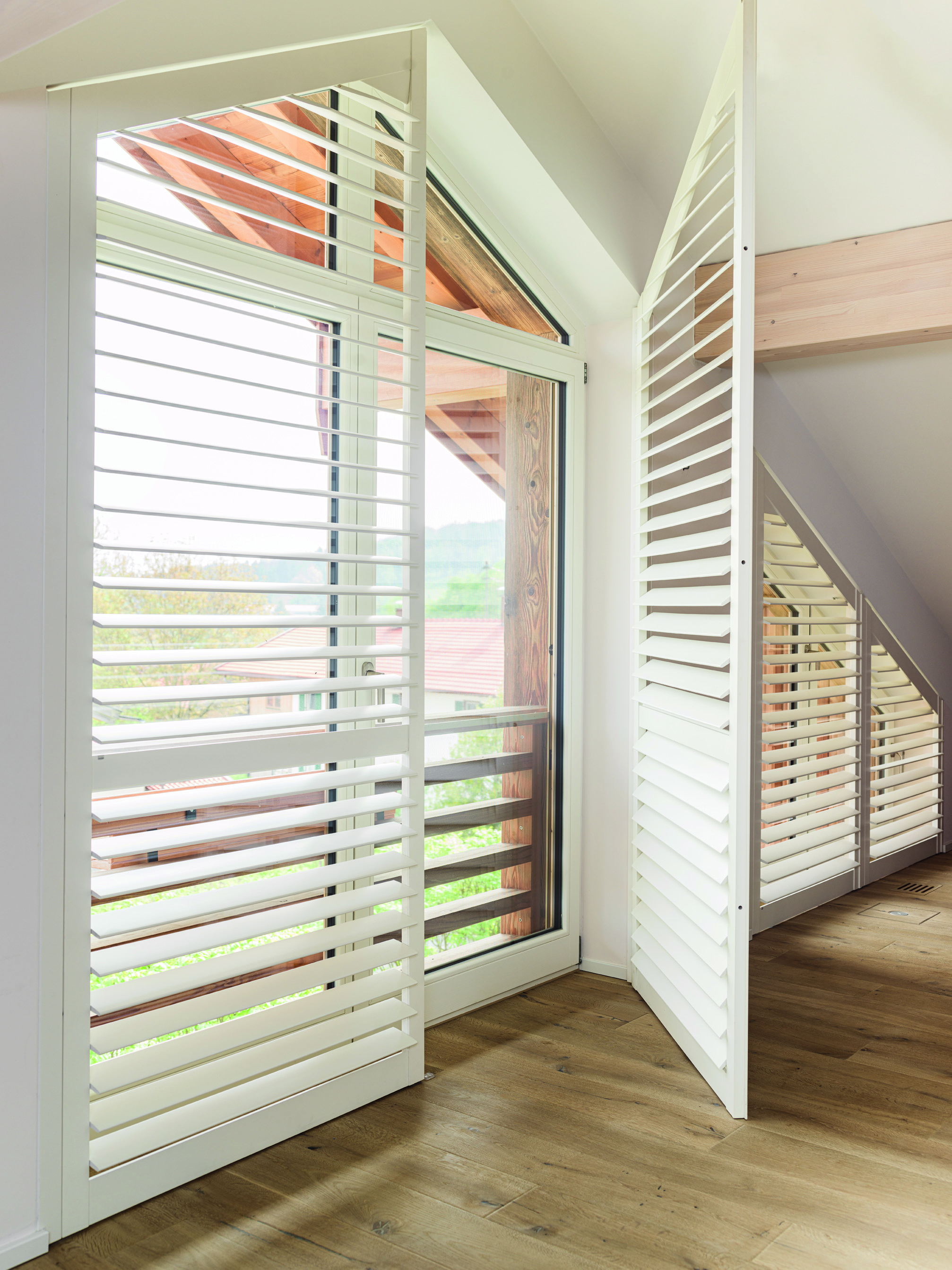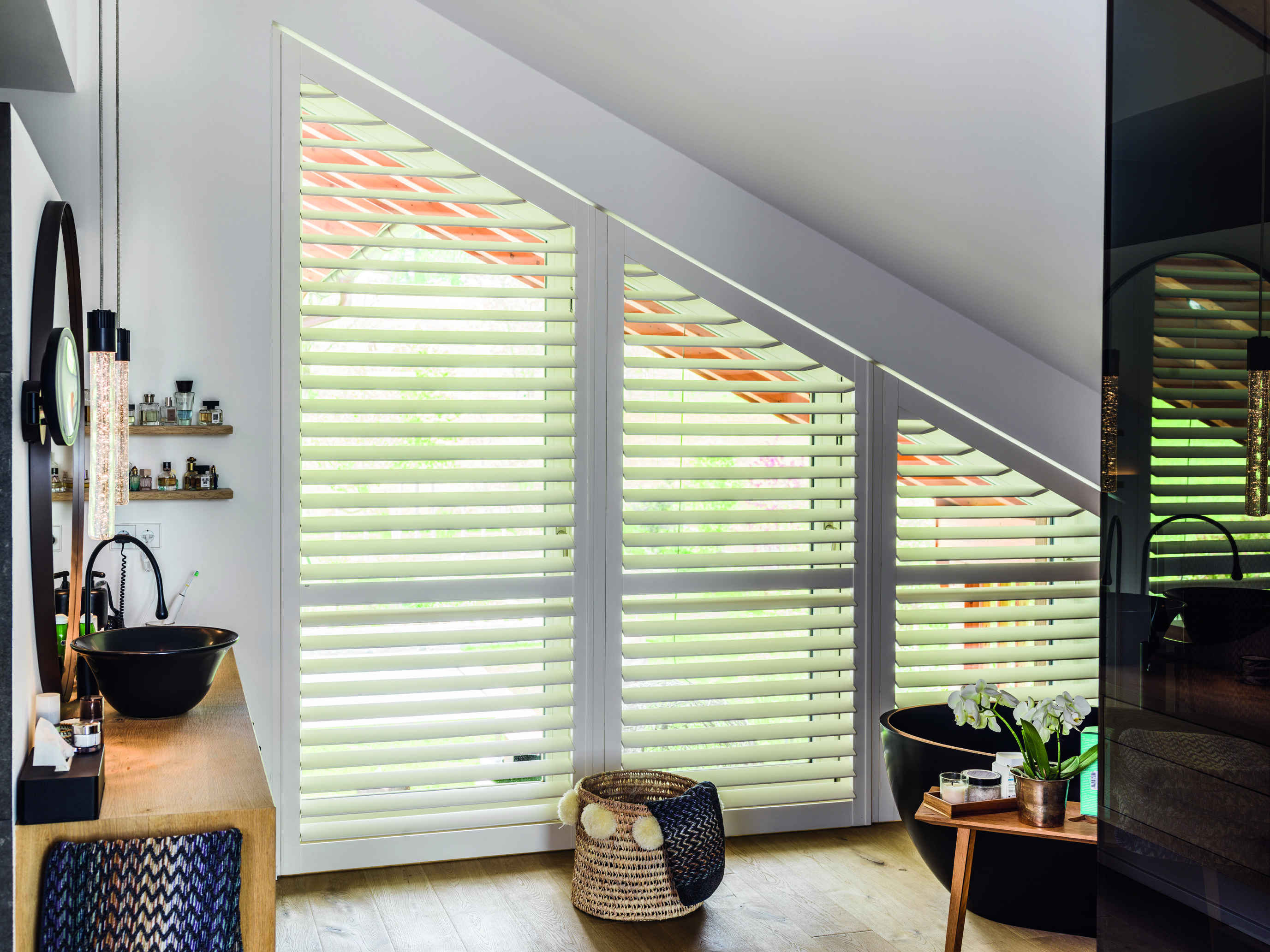 Ronde of puntige ramen, schuine dakramen en hoge glaspartijen zijn steeds vaker bepalend voor het ontwerp van een woning. Bijzondere raamvormen vragen om oplossingen die de architectuur respecteren. Maatwerk shutters volgen de contouren van het raam en versterken zo het karakter van het huis. Bij JASNO worden shutters exact op maat gemaakt, waardoor het raam een designstatement op zich wordt.