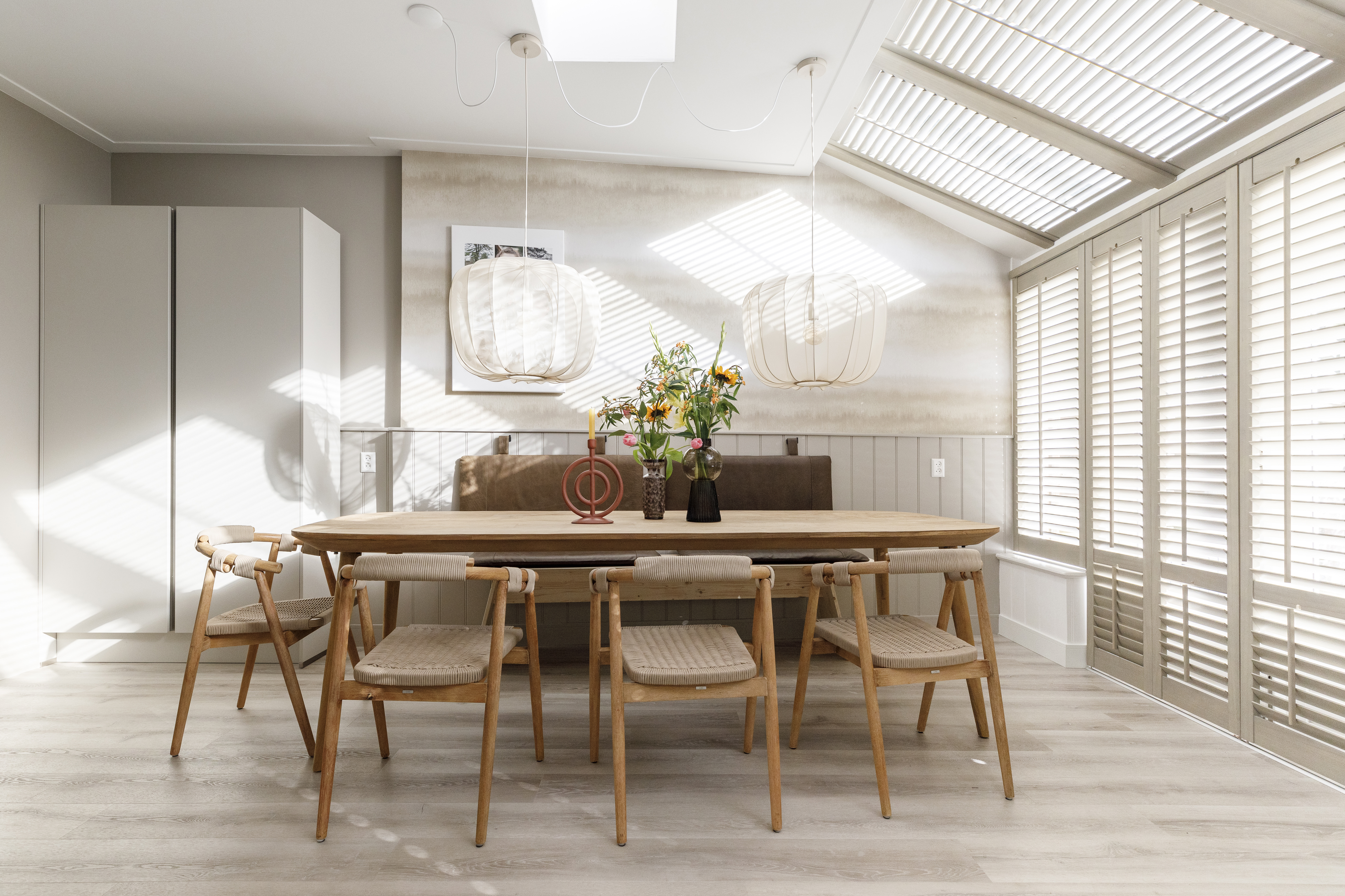 Interieurkeuzes draaien niet alleen om uitstraling, maar ook om slimme keuzes. Houten shutters reguleren licht en temperatuur, houden in de zomer de hitte buiten en in de winter de warmte juist langer vast. Stijlvol, duurzaam én slim dus!