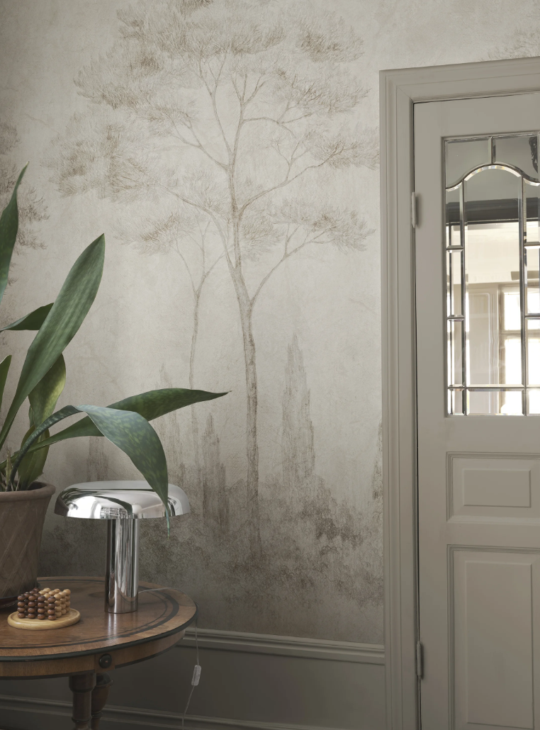 Ook romantiek en historie zijn zichtbaar in de collectie, zoals in de ontwerpen Ines en Nicola, beide behangpatronen met een zachte patina uitstraling en uitbundige bloemen, geïnspireerd op antieke fresco’s in de villa’s langs het meer. De patronen Laura en Olivia brengen daarentegen rust met subtiele groentinten, terwijl het dessin Limone een levendige, mediterrane sfeer toevoegt met frisse citrustakken en citroenen.