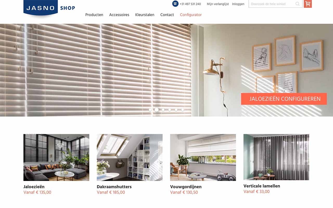 "De webshop is een zeer belangrijk instrument om de consument te kunnen bereiken, zonder de beleving uit het oog te verliezen,” aldus directeur Simon Sants. “Consumenten denken niet meer in termen van winkelopeningstijden. Ze willen 24/7 toegang hebben tot informatie, producten kunnen samenstellen en kopen. Met onze configurator kun je JASNO maatwerk raamdecoratieproducten naar wens samenstellen én zien hoe het past in een interieur.”