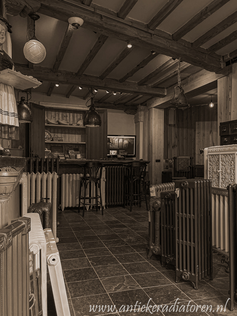 Het oude huis is gespecialiseerd in de verkoop van oude, gerestaureerde, gietijzeren radiatoren.