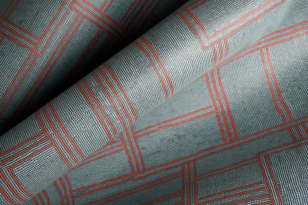 Neem nu het ‘quillwork’, waar Civilia op gebaseerd is. Het moet zowat de oudste handwerkvorm zijn, een soort van borduurwerk, en werd gebruikt om kleding, schoeisel, juwelen, tassen en manden mee te versieren. Civilia vertoont een rechtlijnig motief zonder echt strak te zijn. Het oogt heel natuurlijk en handgemaakt. Sommige lijnen lopen door, andere stoppen aan een dwarsstreep, wat je soms de indruk geeft dat er laagjes van rechthoeken over elkaar liggen.