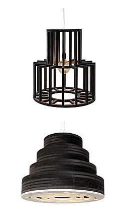 Beide lampen zijn gemaakt van diepzwart of donkerbruin MDF, afgewerkt met olie, waardoor het MDF een fluweelachtig uiterlijk krijgt.