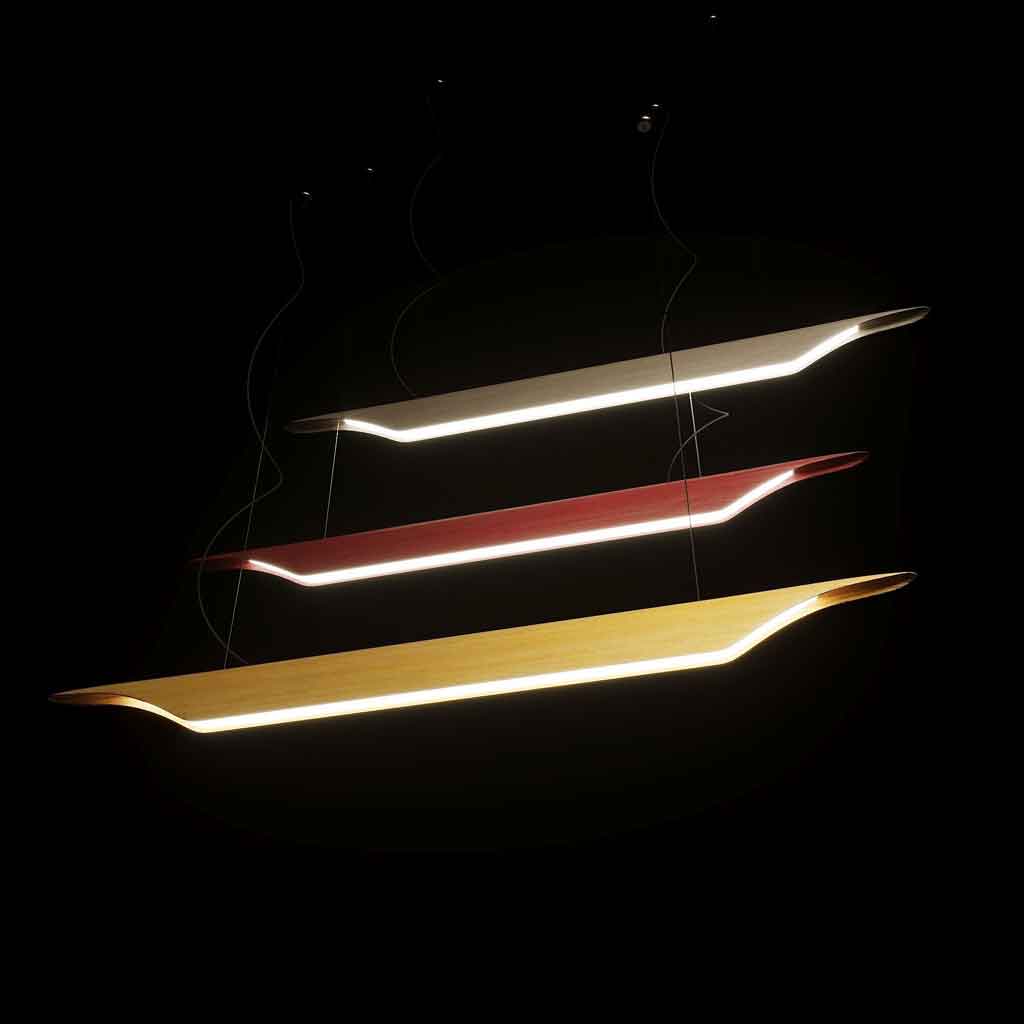 In Zweden is de ‘tröag’ een houten kom in de vorm van een kano, die wordt gebruikt om fruit te pletten. Het is niet zomaar een huishoudelijk gebruiksvoorwerp, maar een object dat van generatie op generatie wordt doorgegeven. De lichte, lineaire vorm van de schaal inspireerde Foscarini om een lamp te creëren die de verfijnde elegantie van hout combineert met hoge prestaties.