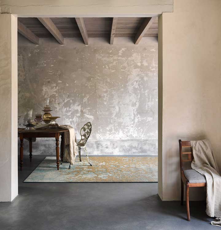 In het eclectische interieur is de hang naar romantiek en nostalgie in opkomst. Inspiratie uit een rijk verleden zien we doorvertaald naar een hedendaagse sfeer. Een nieuwe eyecatcher op dit front is vloerkleed Precious gemaakt van 100% gerecyclede Econyl® garens die afkomstig zijn van o.a. oude visnetten uit de oceaan. Dit vloerkledenontwerp is geïnspireerd op authentieke kleuren uit de tijd van de Franse zonnekoning Lodewijk XIV: van groene koperen daken van het paleis van Versailles tot modisch blauw met goud uit de luxe slaapkamer van Marie Antoinette.