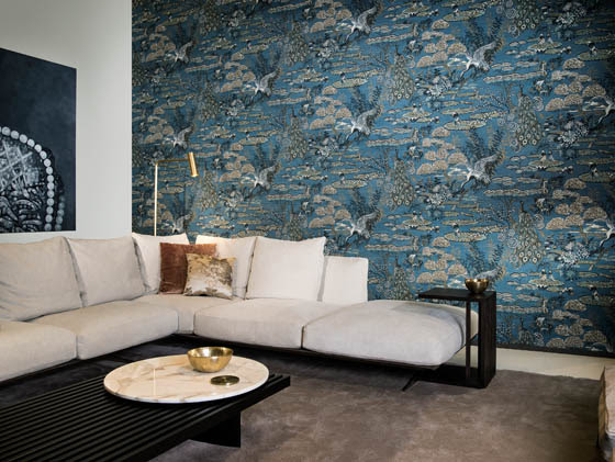 Lees alles over Prints vol exotische planten en dieren, Luxueuze muurbekleding met oosterse invloeden, Dessins Lotus en Crane