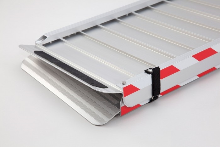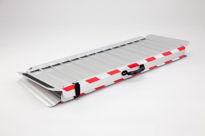 Doordat de oprijplaat envoudig en snel horizontaal opvouwbaar is, is de oprijplaat eenvoudig mee te nemen of op te slaan wanneer de oprijplaat niet gebruikt wordt.