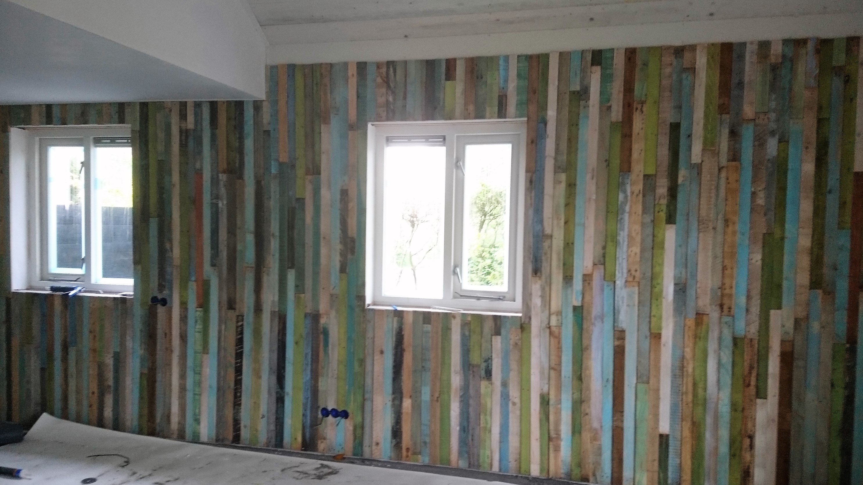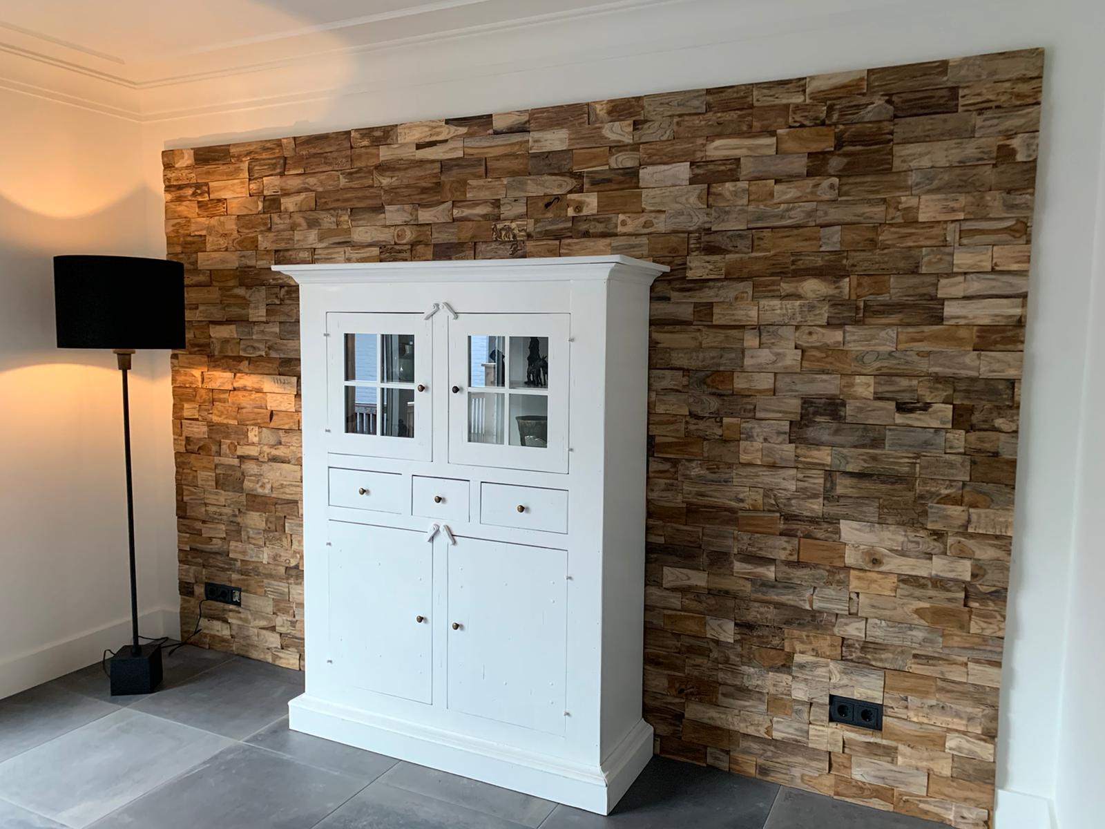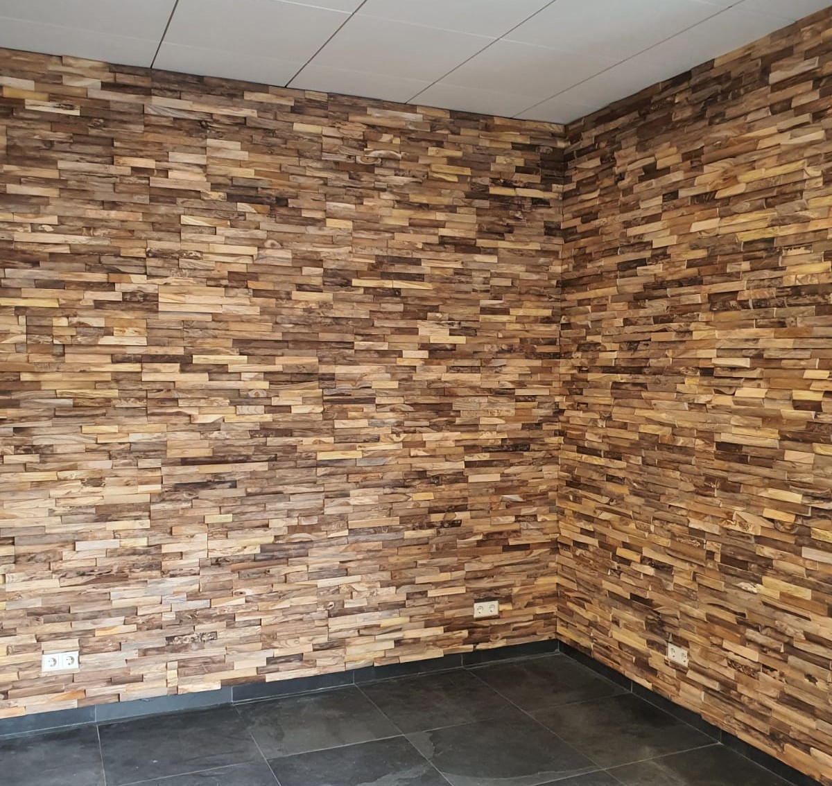Uniek houtstrip wandbekleding. Deze vintage houtstrips zijn perfect voor een accentmuur in uw huis