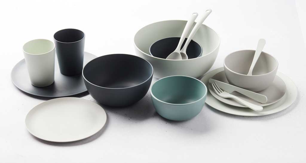 De oogstrelende designcollectie bestaat uit mokken, kommen, borden en sla- en besteksets. Het servies is zeer licht van gewicht en ideaal voor onderweg. Een uitstekende keuze dus in de strijd tegen wegwerpbestek.